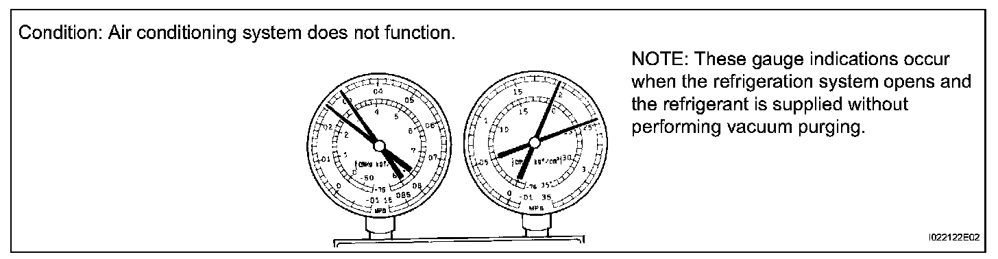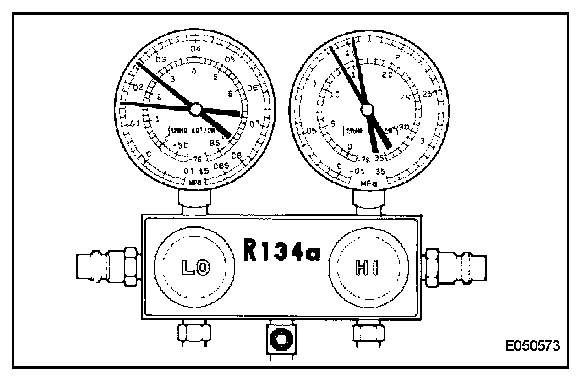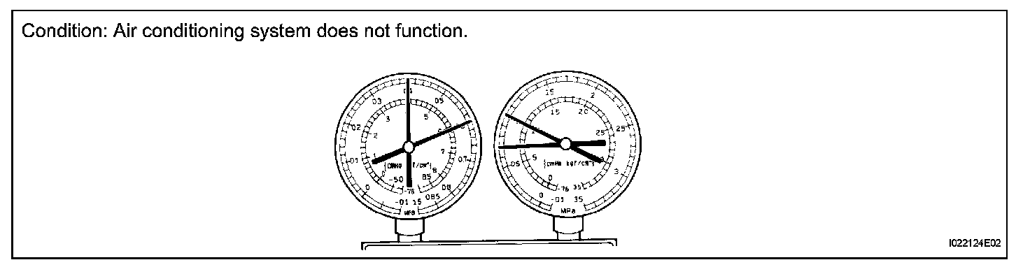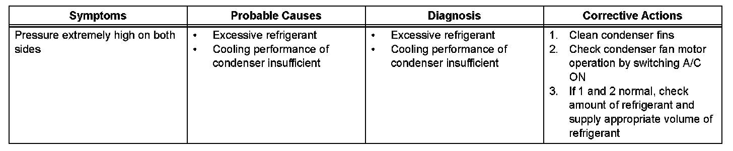 a. This is a method to identify trouble areas by using a manifold gauge set. Read the manifold gauge pressure under the following conditions.