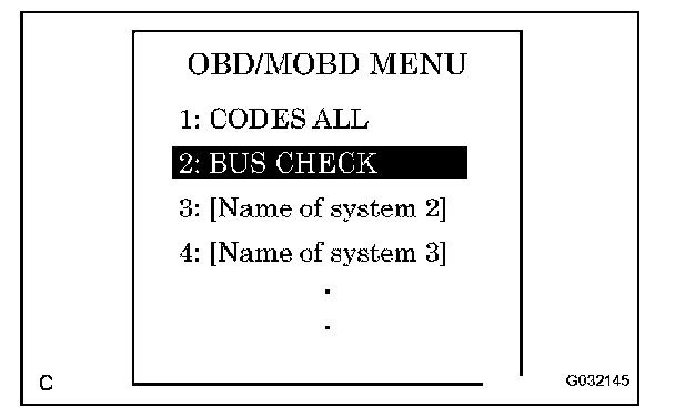 a. Select "BUS CHECK" from the "OBD/MOBD MENU" screen.