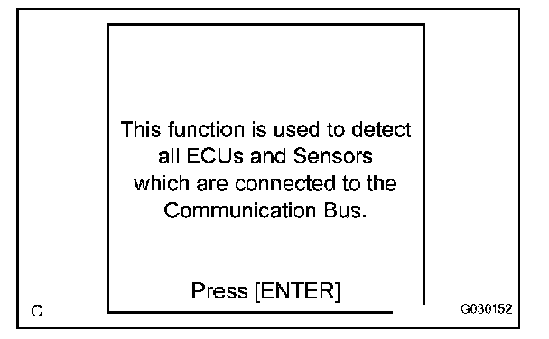 - If any properly connected ECUs or sensors are not displayed, there is a communication stop in the system.