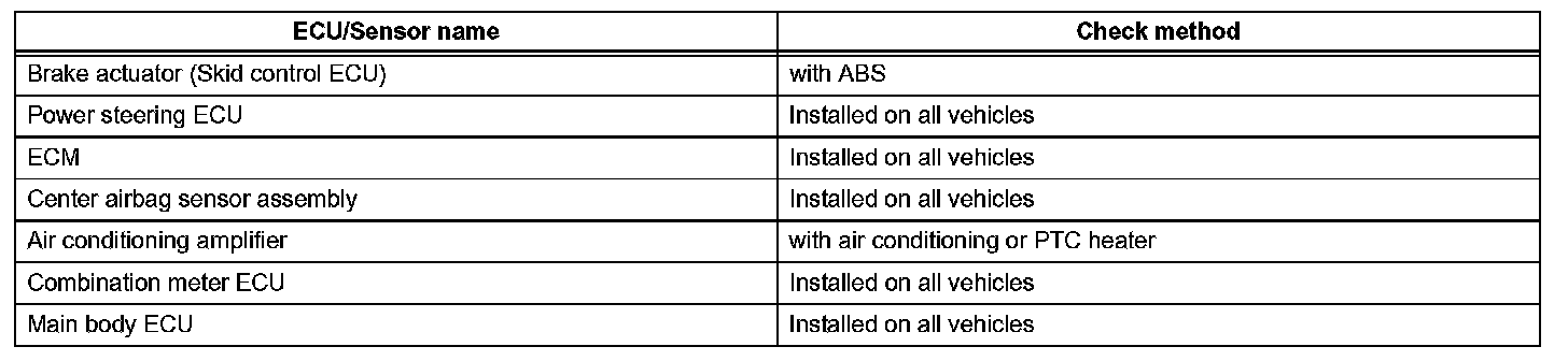 a. Systems (ECUs and sensors) that adopt CAN communication vary depending on the vehicle's optional settings. Check which systems (ECUs, sensors) are installed on the vehicle.
