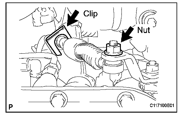 (b) Remove the clip and disconnect the control cable from the control cable bracket.