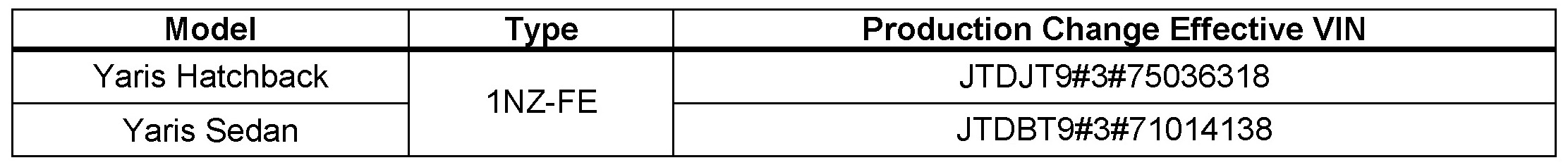 - 2007 model year Yaris vehicles produced BEFORE the Production Change Effective VINs shown below.
