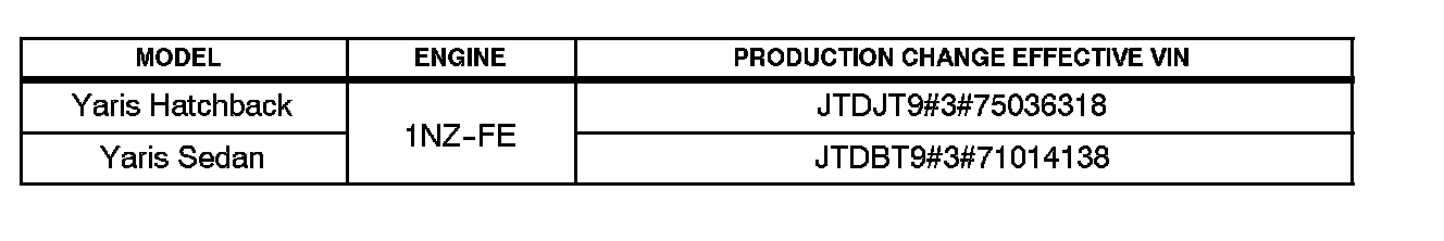 ^ 2007 model year Yaris vehicles produced BEFORE the Production Change Effective VINs shown below.