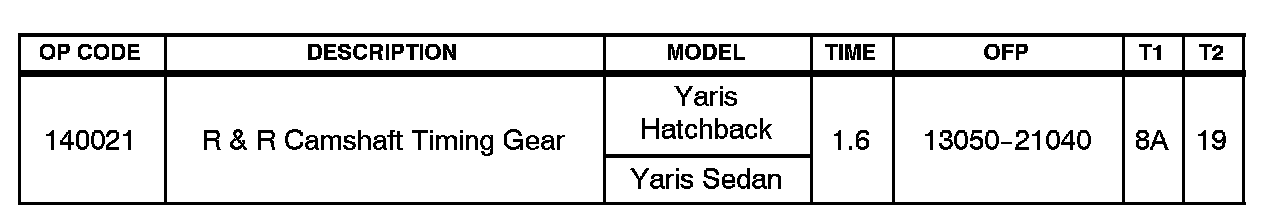 Refer to TIS, 2007 model year Yaris Repair Manual, Engine/Hybrid System - Engine Mechanical - "1NZ-FE Engine Mechanical: Camshaft: Removal".