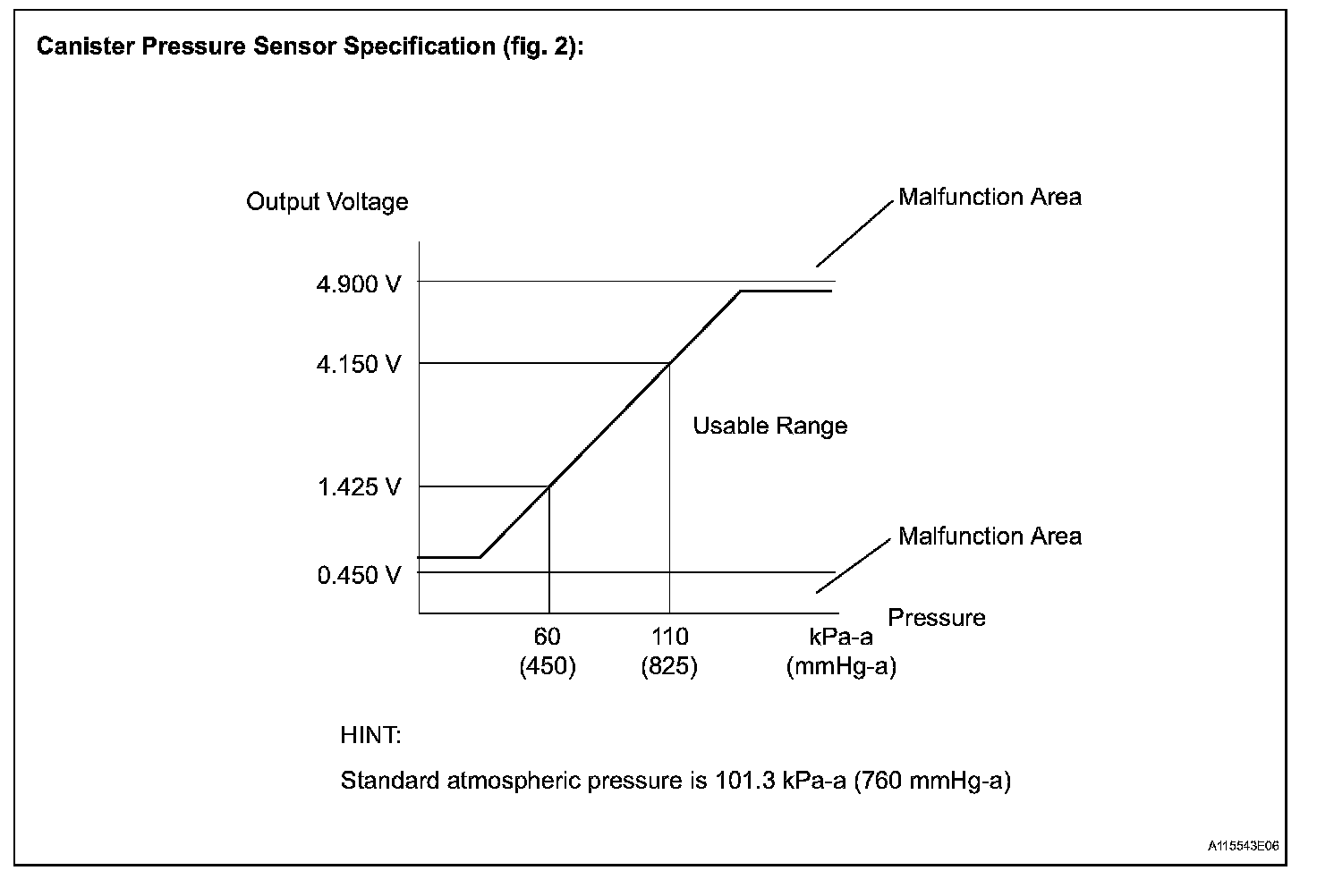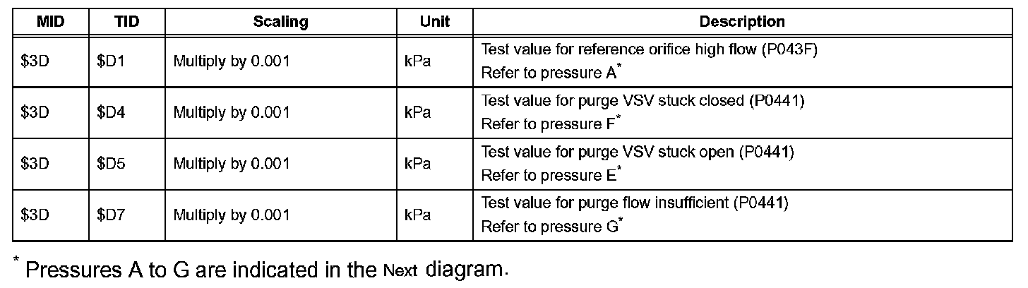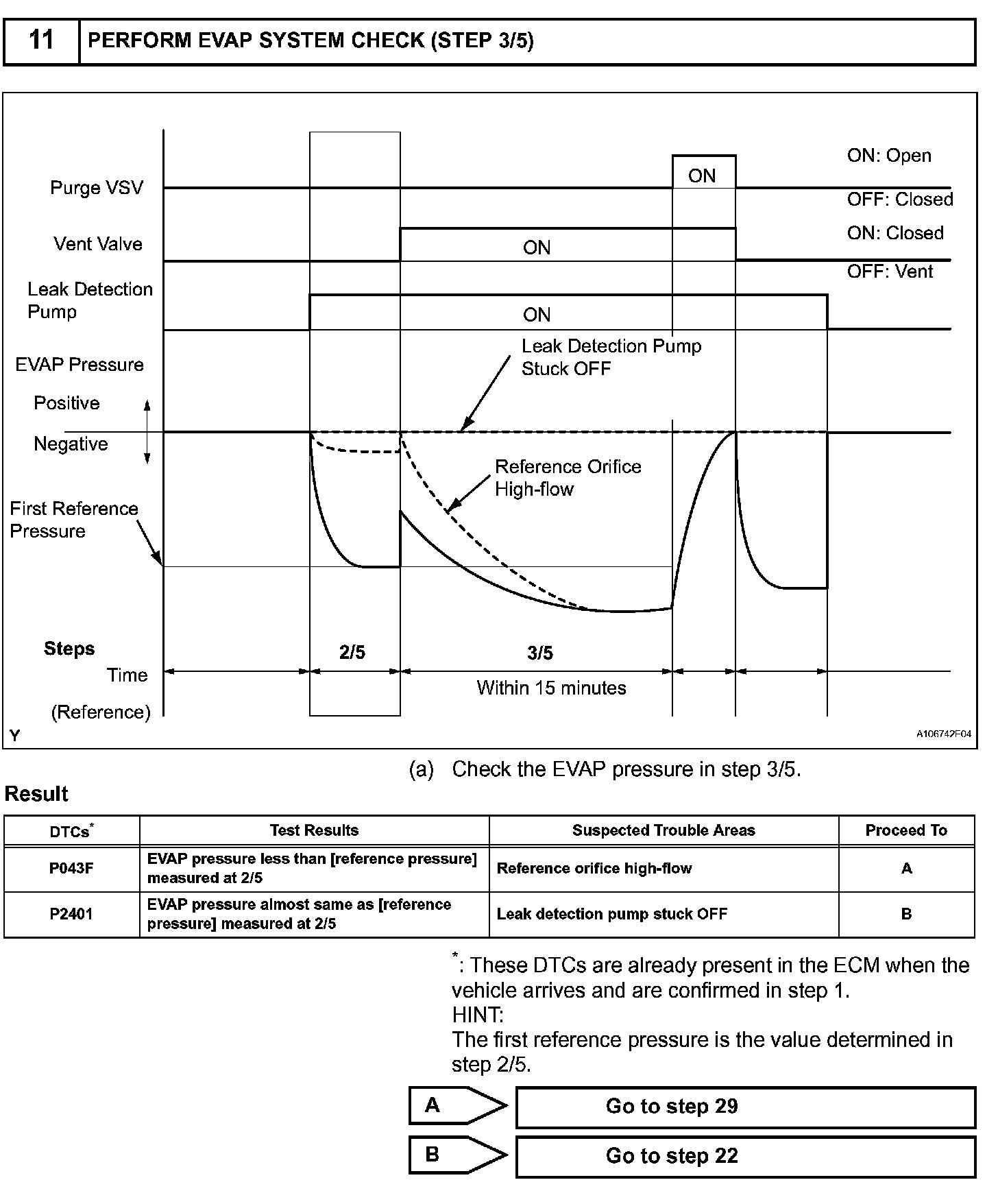 NOTE: If the reference pressure difference between the first and second checks is greater than the specification, all the DTCs relating to the reference pressure (P043E, P043F, P2401, P2402 and P2419) are stored.