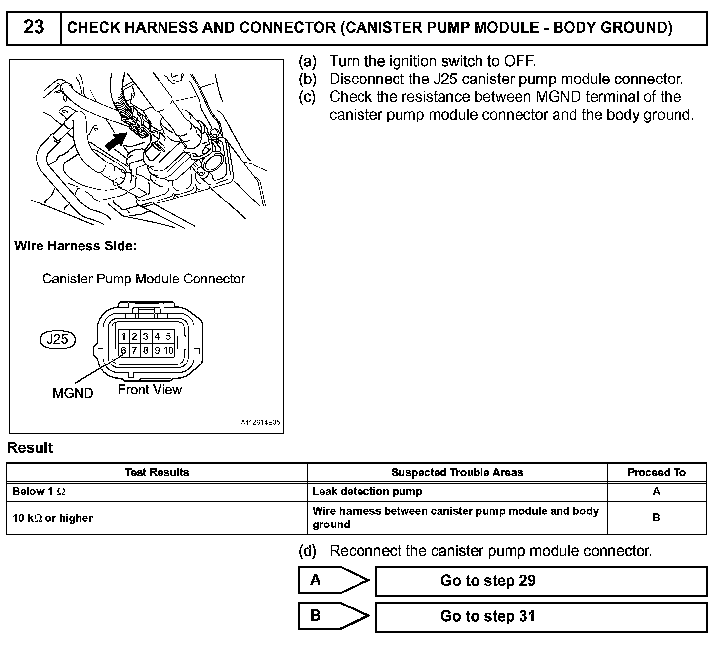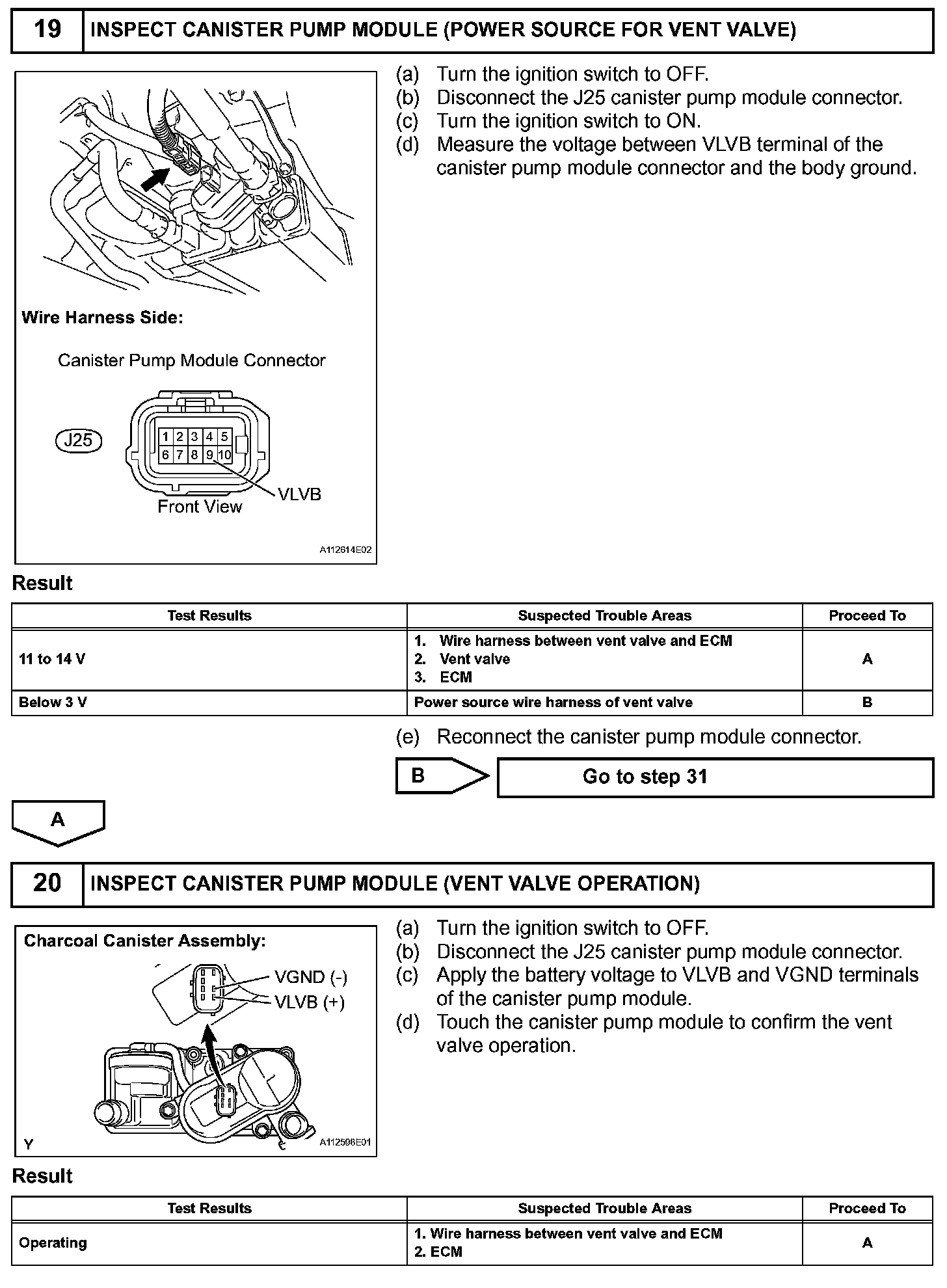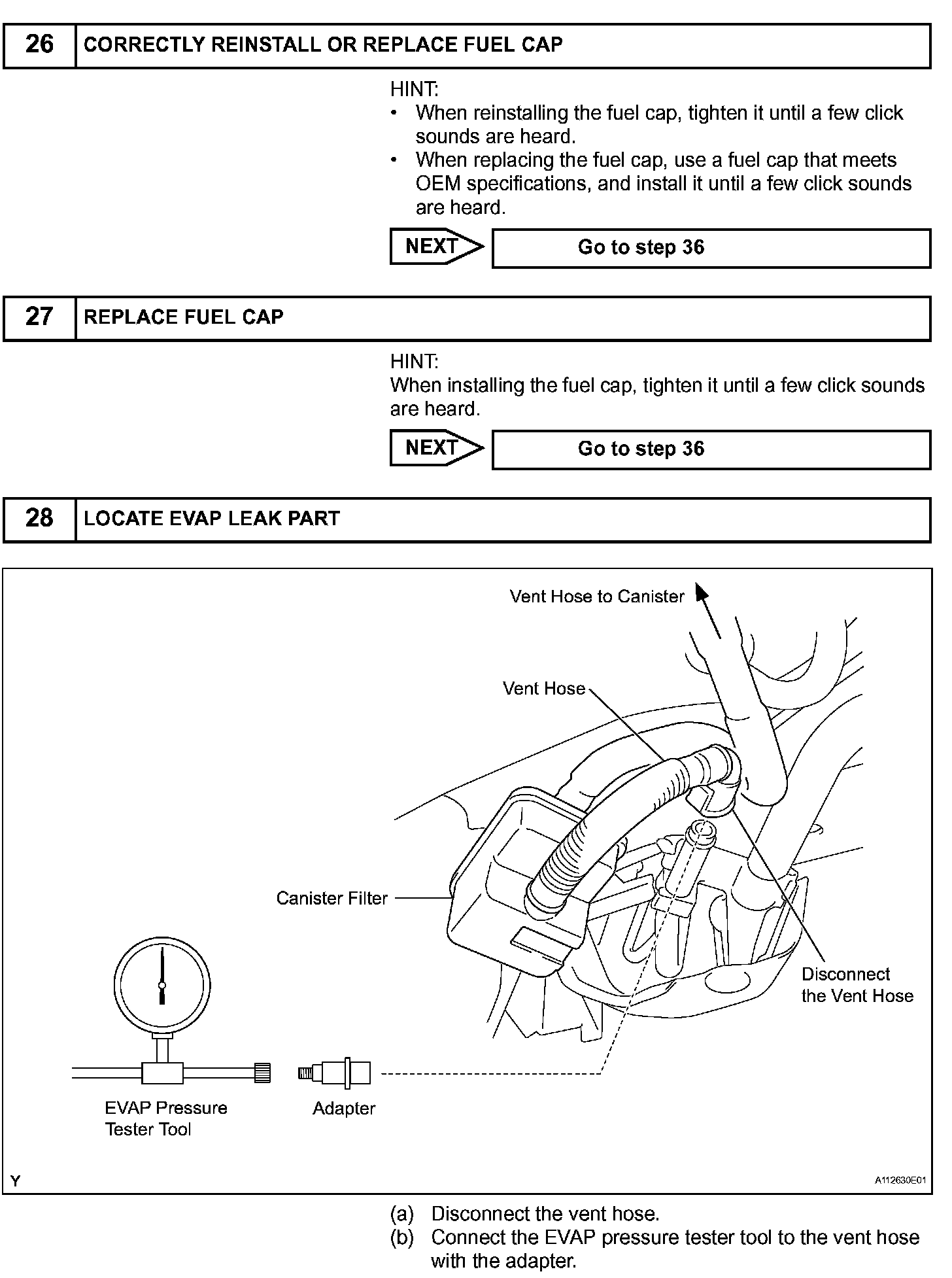 If any EVAP system DTCs are set, the malfunctioning area can be determined using the table.