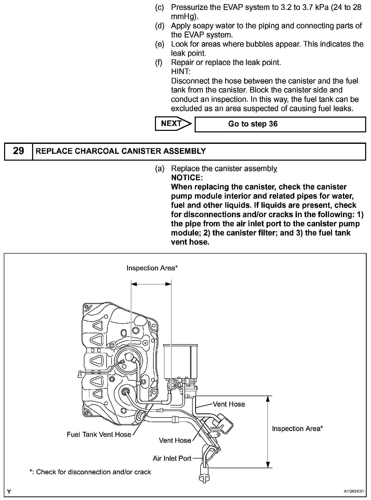 NOTE: In this vehicle's EVAP system, turning ON the vent valve does not seal off the EVAP system. To check for leaks in the EVAP system, disconnect the air inlet vent hose and apply pressure from the atmospheric side of the canister.