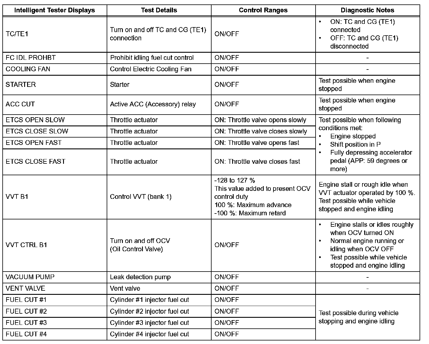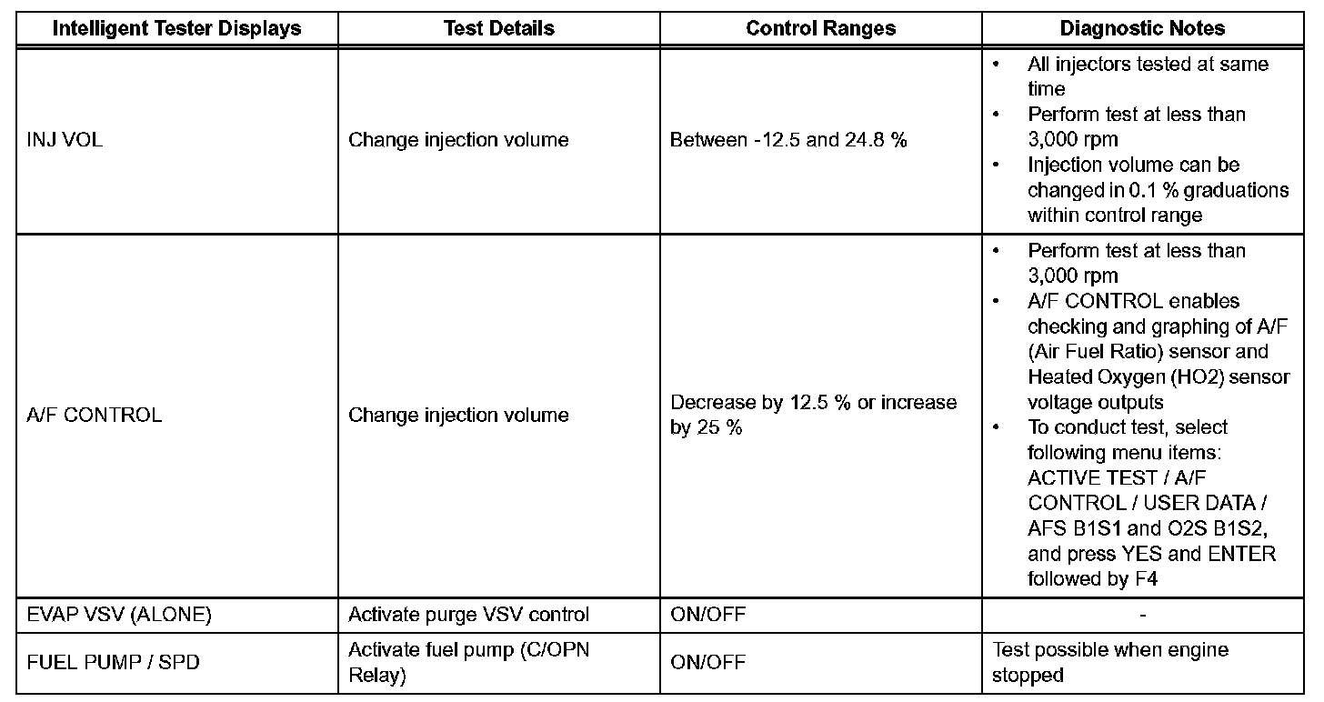 e. Perform the ACTIVE TEST by referring to the table.