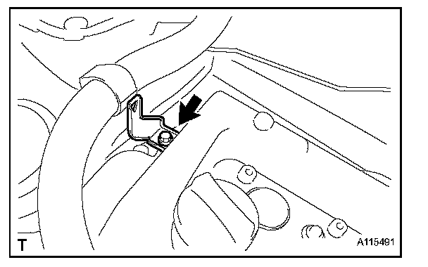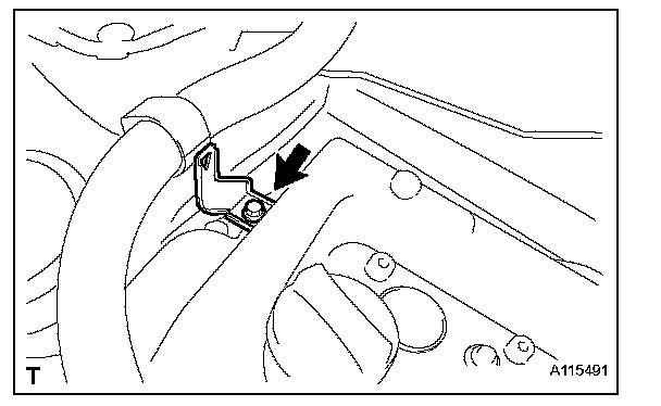c. Remove the bolt and remove the wire harness bracket.