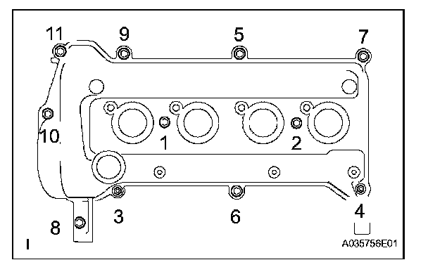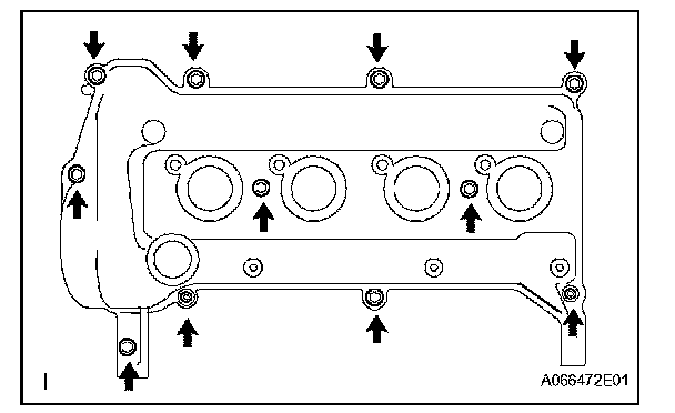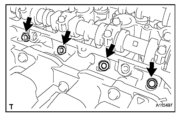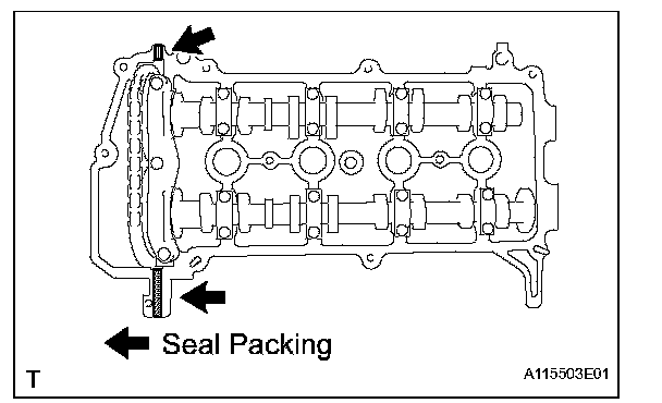 - Install the cylinder head cover sub-assembly within 3 minutes of applying the seal packing.