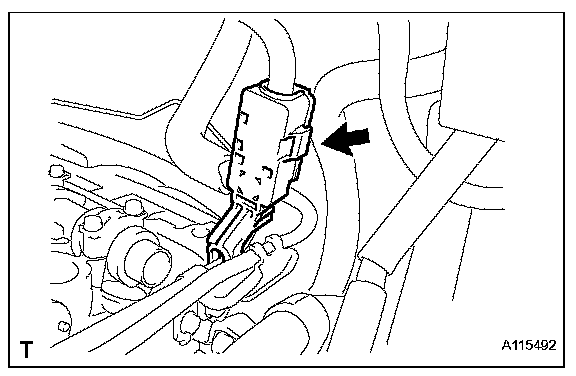 e. Connect the connector and wire harness clamp shown in the illustration and connect the engine wire harness.
