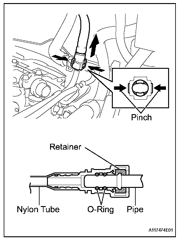 - Do not allow any scratches or foreign matter on the parts when disconnecting, as the fuel tube connector has the O-ring that seals the pipe.