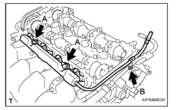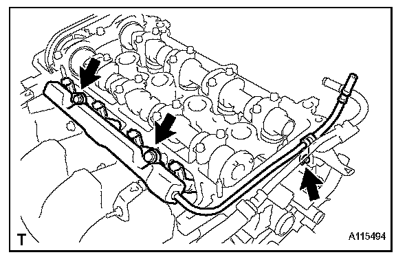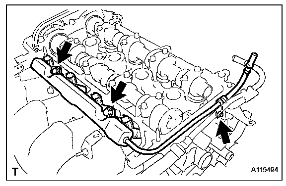 NOTE: Do not drop the fuel injectors when removing the fuel delivery pipe sub-assembly.