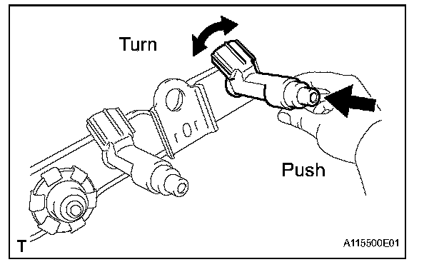 c. While turning the fuel injector left and right, install it onto the fuel delivery pipe.