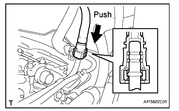 - If the fuel tube connector and pipe are stuck, push and pull to release them.