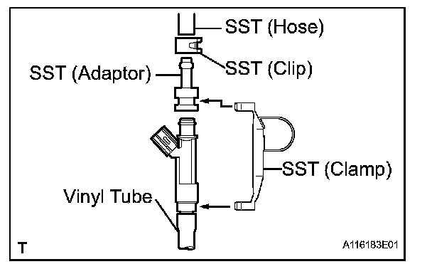 1. In the condition , disconnect the test probes of SST (wire) from the battery and check the injector for fuel leakage.