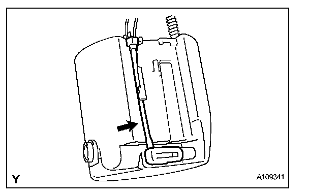 b. Release the lock as shown in the illustration and slide the fuel sender gauge to remove it.
