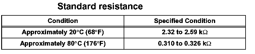 If the resistance is not as specified, replace the engine coolant temperature sensor.