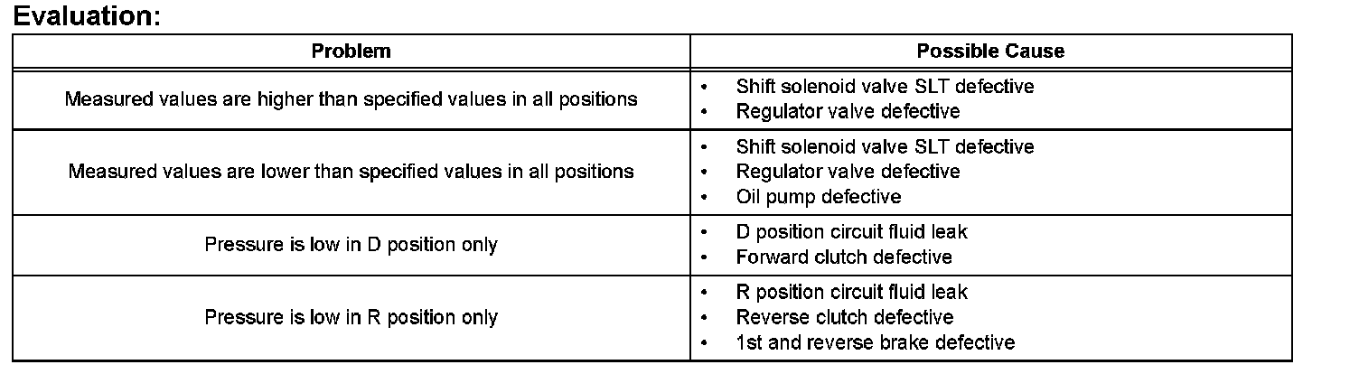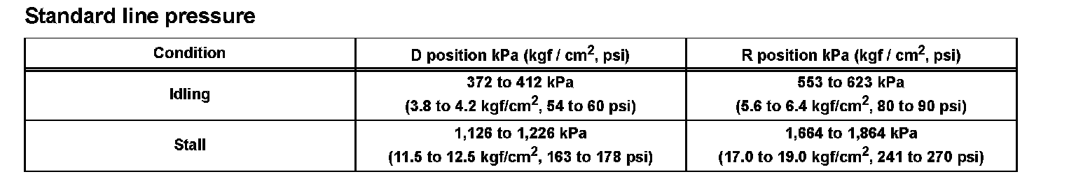 ^ Perform the test at the normal operating ATF (Automatic Transmission Fluid) temperature 50° to 80°C (122° to 176°F).