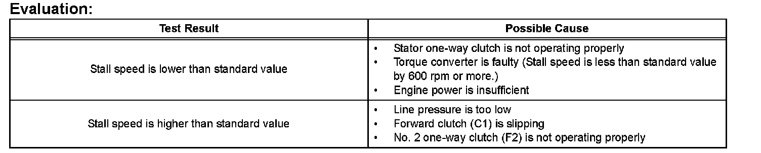 HINT: This test is to check the overall performance of the engine and transaxle by measuring the stall speeds in the D position.