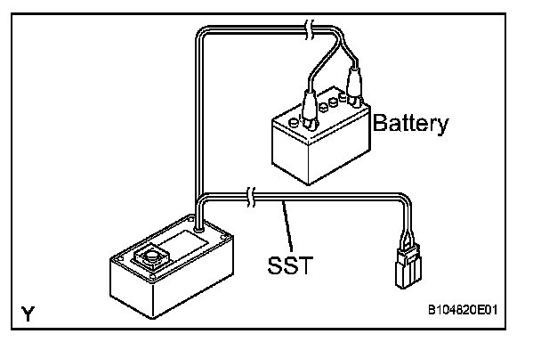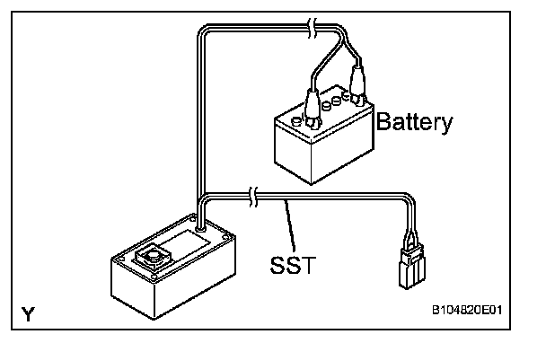 1. Connect the red clip of SST to the positive battery terminal and the black clip of SST to the negative battery terminal.