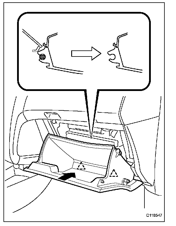 - When removing the front passenger airbag, work must be started at least 90 seconds after the ignition switch is turned to OFF and the cable is disconnected from the negative battery terminal.