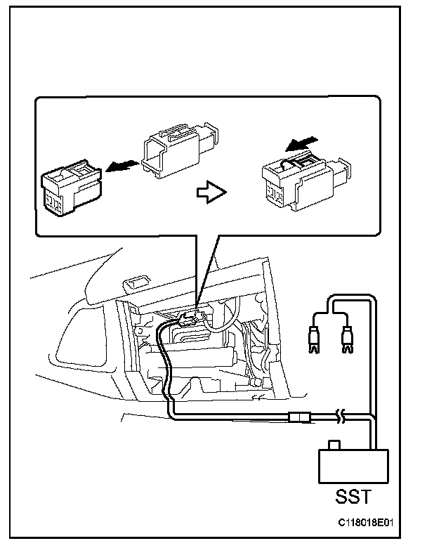 1. Connect the SST connector to the front passenger airbag.