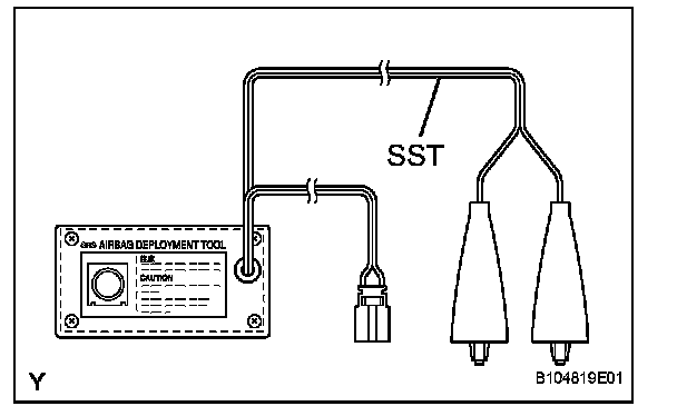 - When deploying the airbag, always use the specified SST (SRS Airbag Deployment Tool). Perform the operation in a place away from electrical noise.