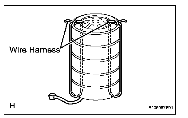 CAUTION: Make sure that the wire harnesses are tight. It is highly dangerous when a loose wire harness results in the tires coming free due to the shock when the airbag is deployed.