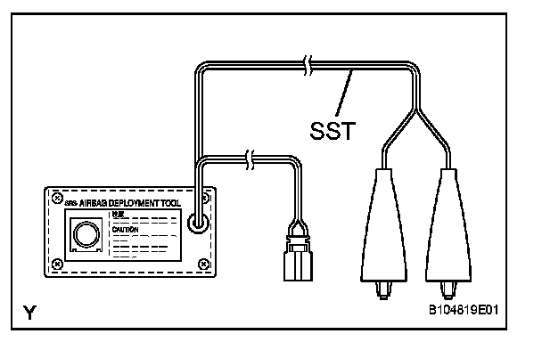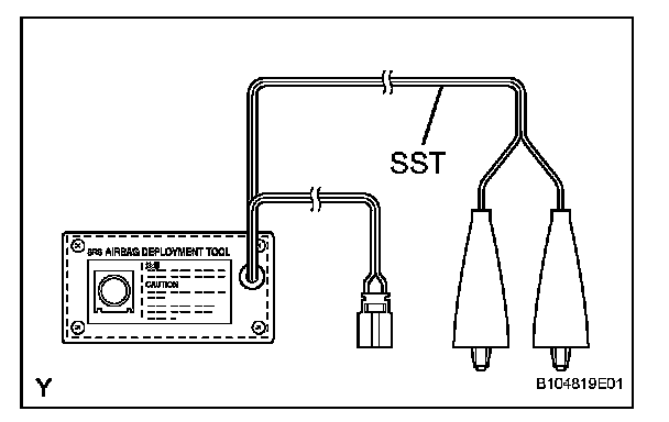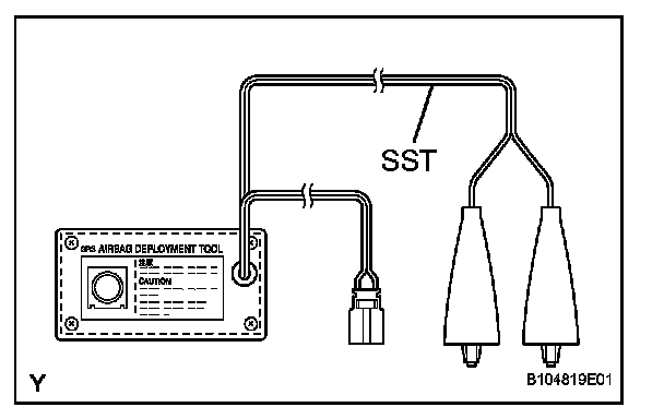 - When deploying the airbag, always use the specified SST (SRS Airbag Deployment Tool). Perform the operation in a place away from electrical noise.