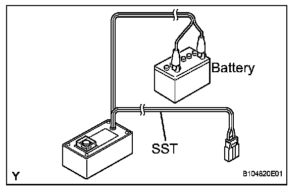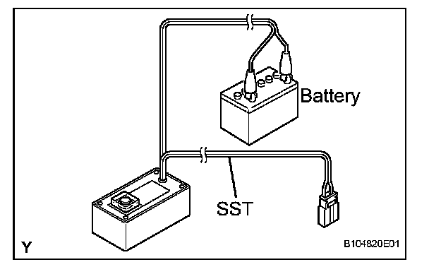 1. Connect the red clip of SST to the positive battery terminal and the black clip of SST to the negative battery terminal.