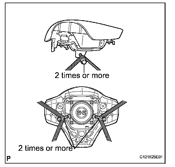 - Make sure that the wire harnesses are tight. If there is any slack in the wire harnesses, the steering pad may become loose due to the shock when the airbag is deployed.