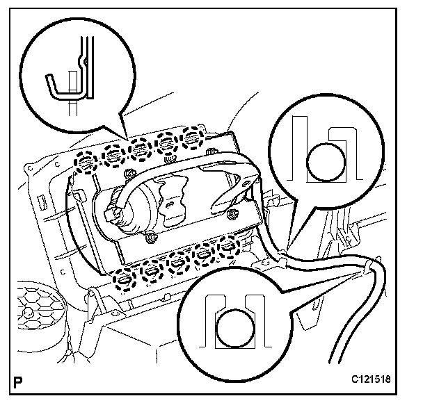 a. Remove the wire harness from the 2 claws of the instrument panel.