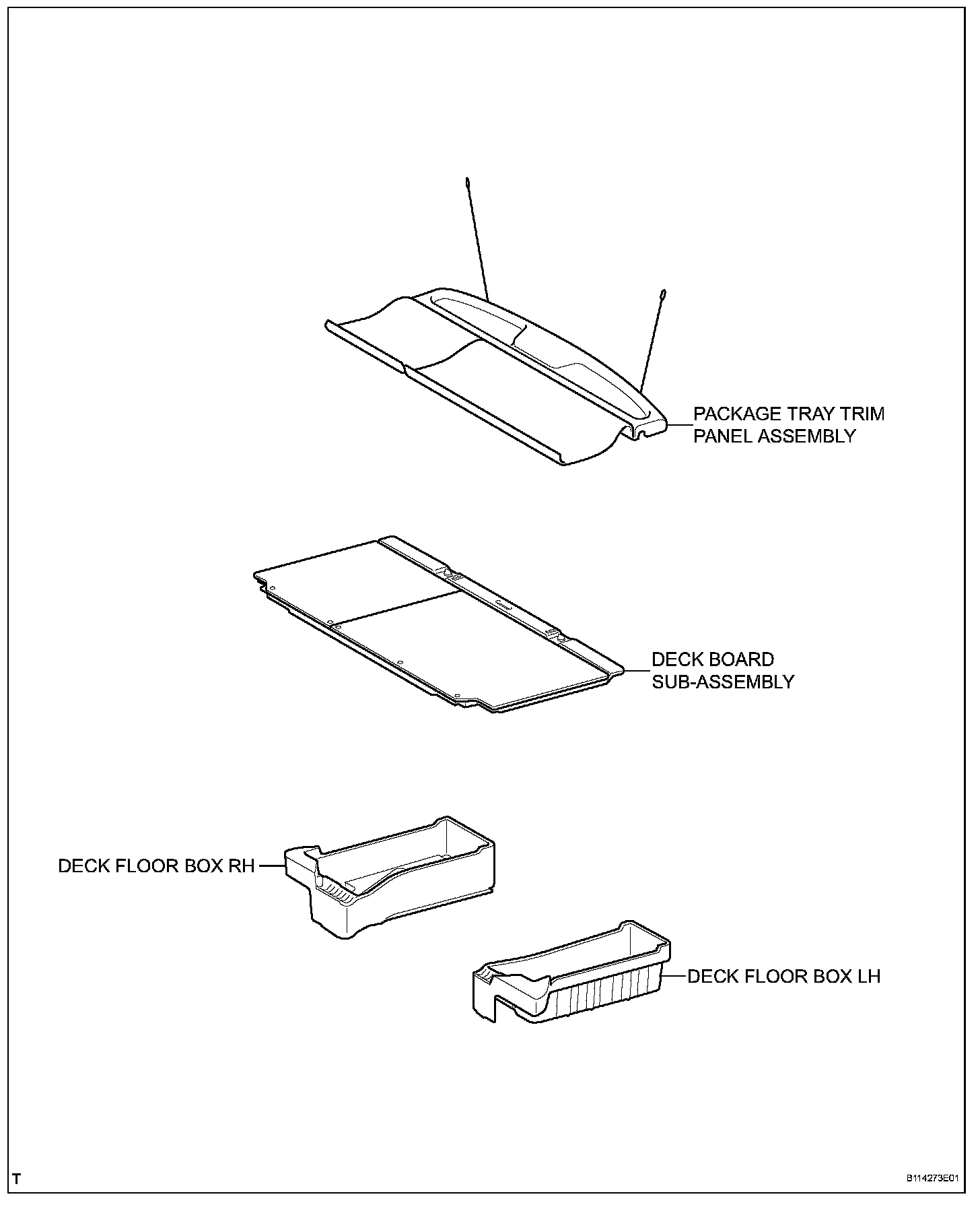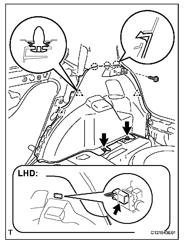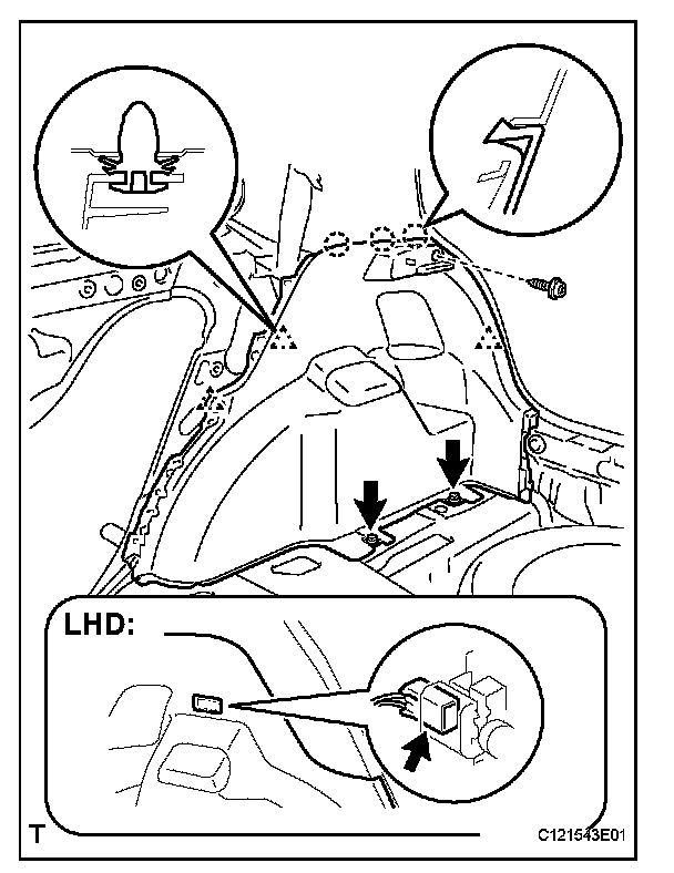 HINT: When removing the deck side trim panel assembly LH disconnect the room light connector and remove the deck side trim panel.