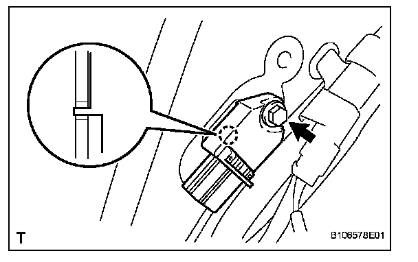 c. Insert the hook into the body hole and install the airbag sensor with the bolt.