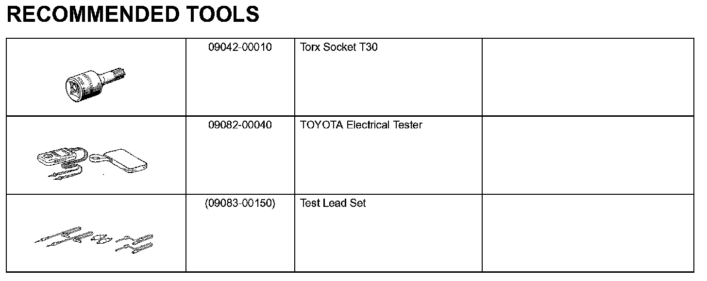 Supplemental Restraint System - Recommended Tool:
