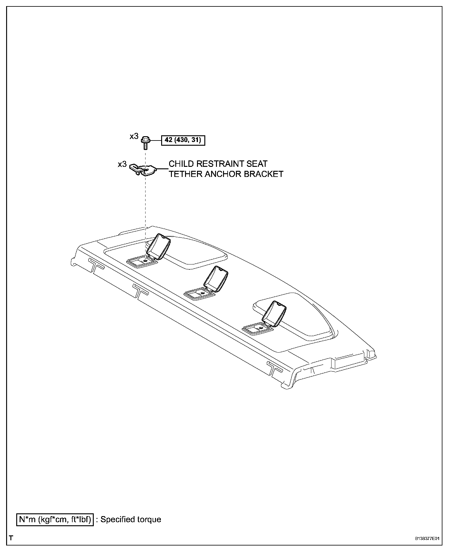1. REMOVE CHILD RESTRAINT SEAT TETHER ANCHOR BRACKET