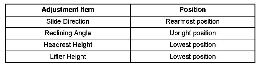 1. Adjust the seat position in accordance with the table.