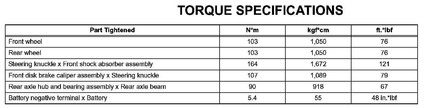 Axle - Torque Specifications: