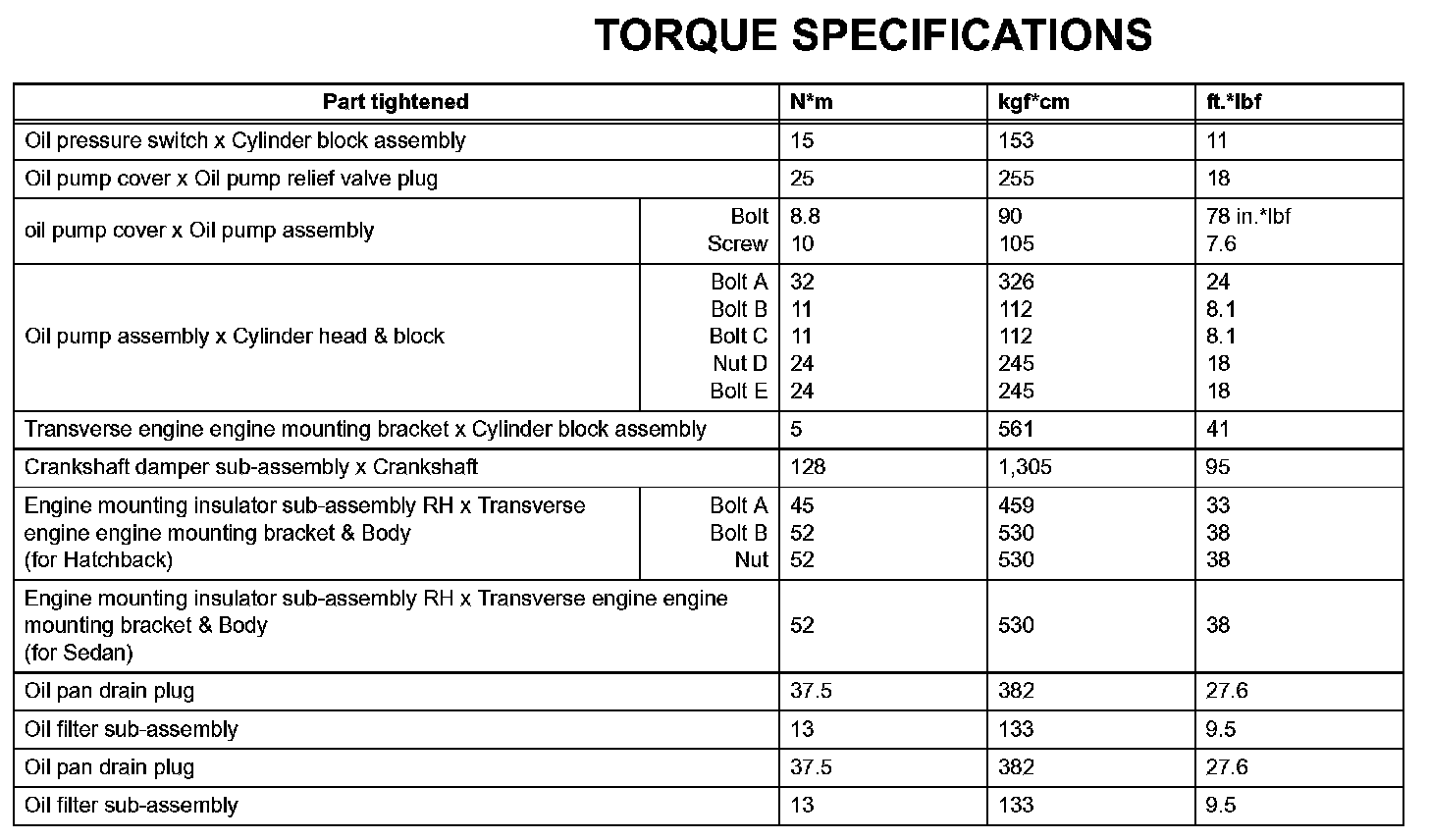 Lubrication - Torque Specifications: