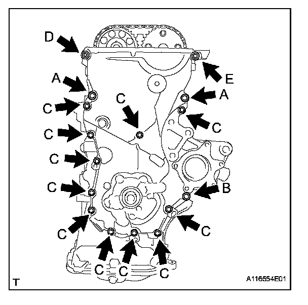 Install the oil pump assembly with the 15 bolts and nut. Tighten the bolts and nut uniformly in several steps.
