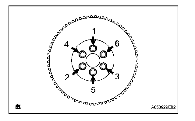 FLYWHEELInstall the flywheel with the 6 bolts in the order shown in the illustration.