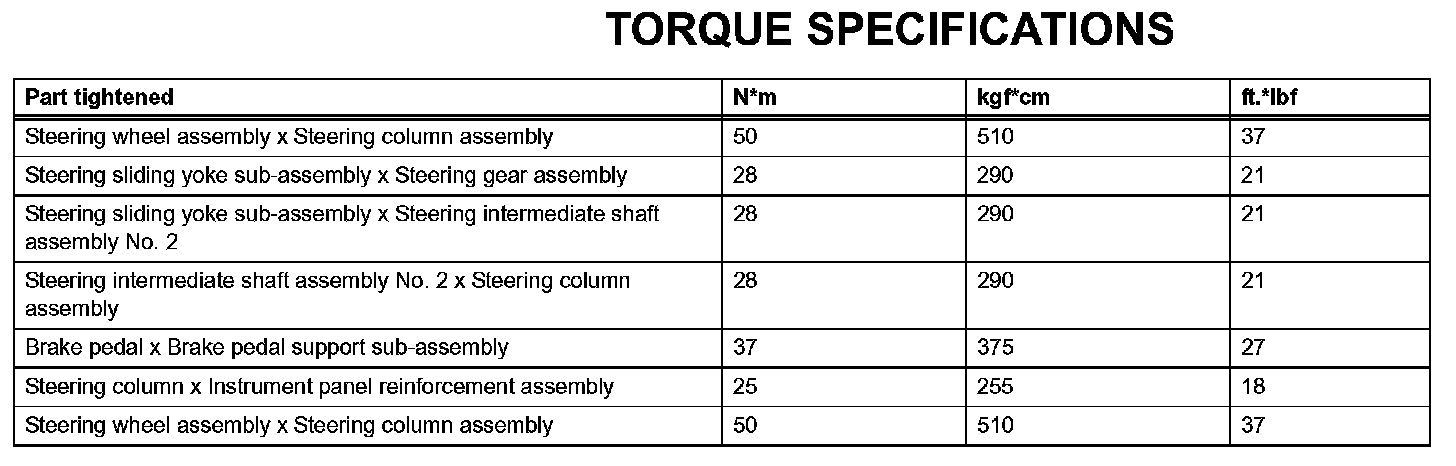 Steering Column - Torque Specifications: