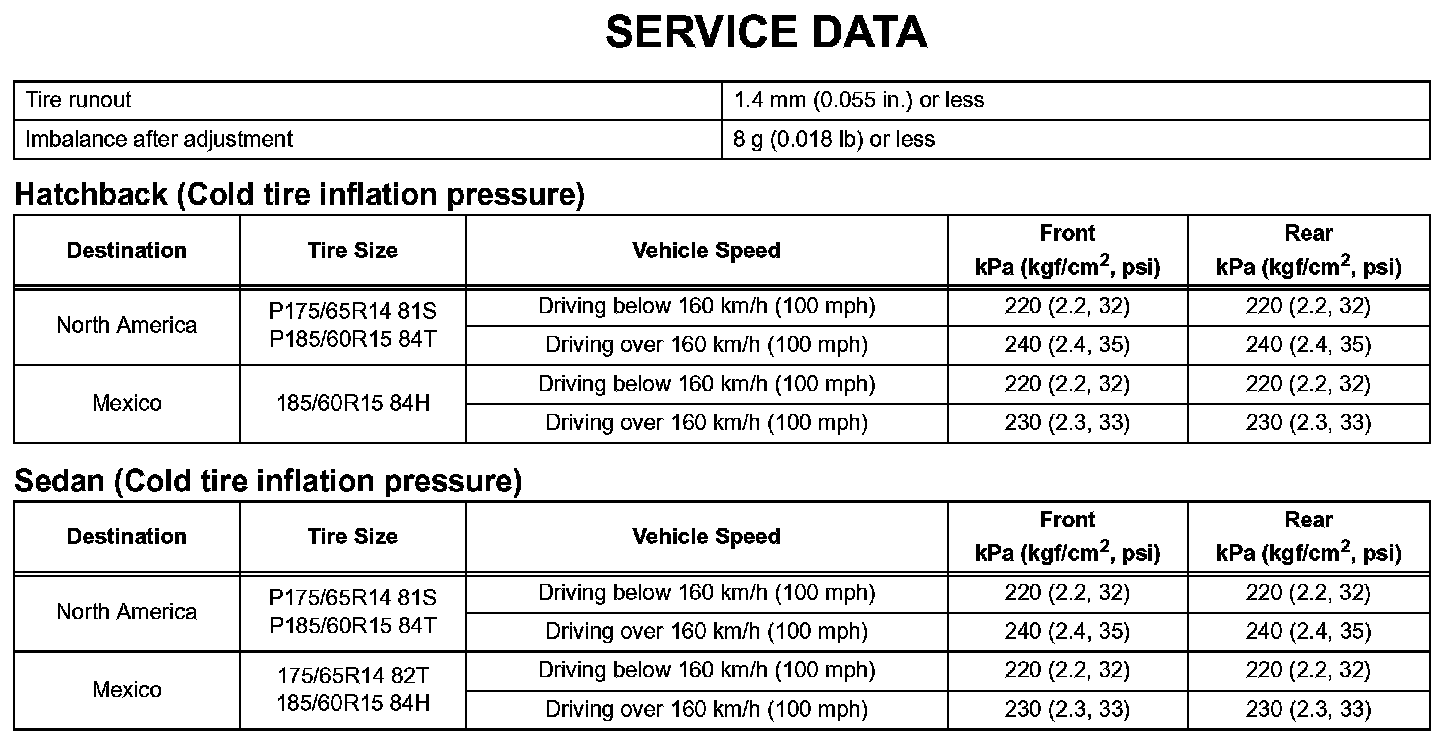 Tire And Wheel - Service Data: