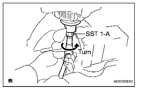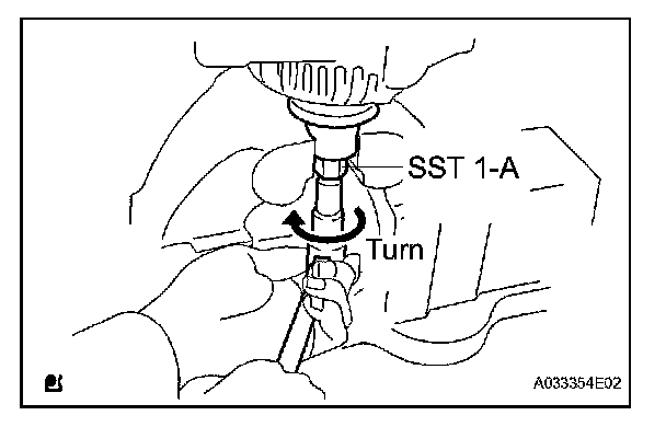 a. Hold SST 1-A with a torque wrench, and tighten SST 1-B clockwise to the specified torque.