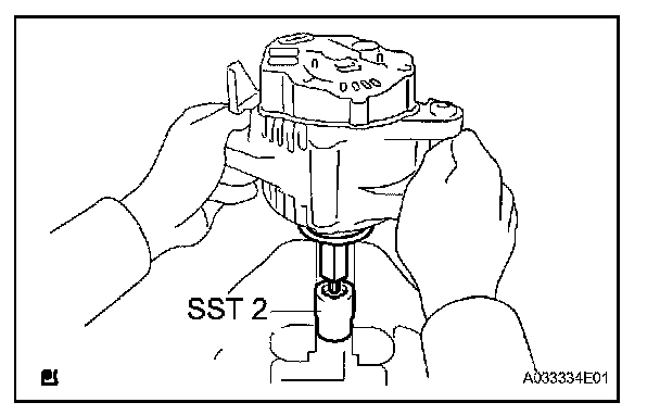 d. Insert SST 1-A and B into SST 2, and attach the generator pulley nut to SST 2.