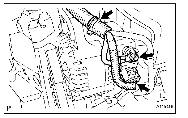 d. Remove fan belt adjusting slider fixing bolts A and and remove the fan belt adjusting slider.