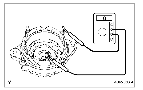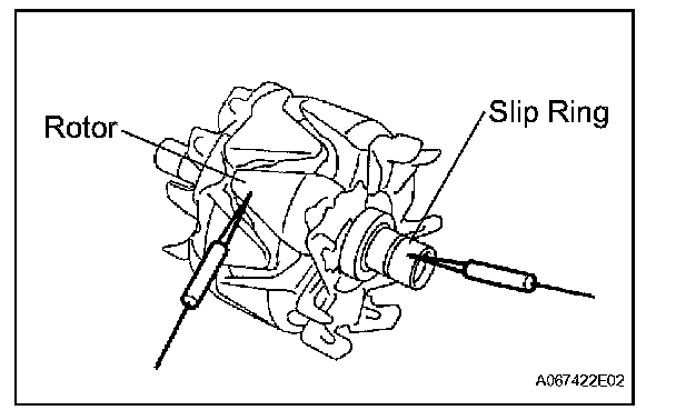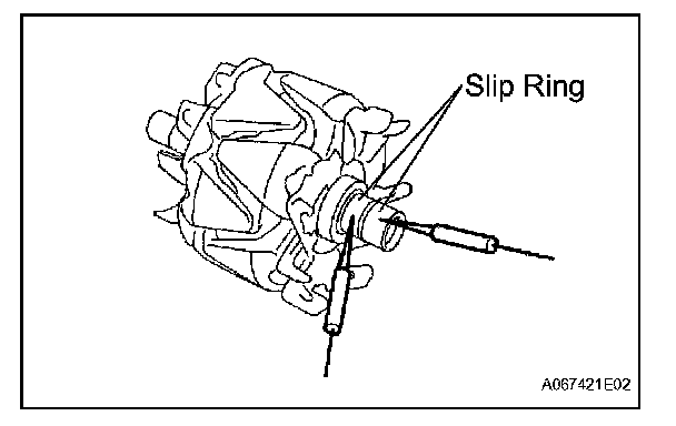 1. Using an ohmmeter, check the resistance between the slip ring and generator rotor assembly.