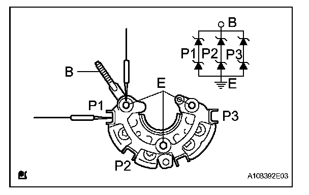 a. Using an ohmmeter, check the continuity among terminals P1, P2, P3 and B, and among P1, P2, P3 and E.