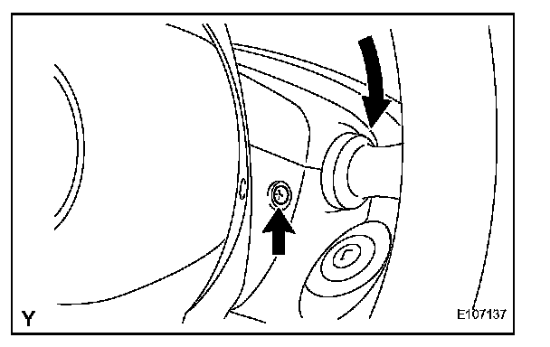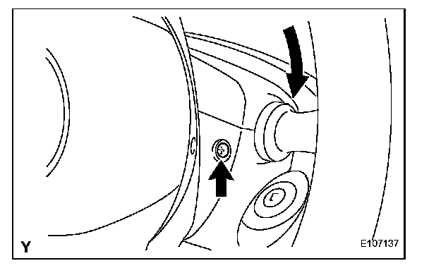 b. Turn the steering wheel to the left and install the screw indicated in the illustration.